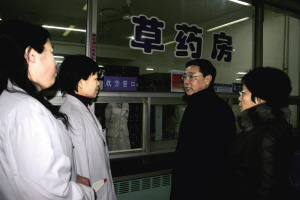 2009年12月29至30日,國家中醫(yī)藥管理局副局長馬建中前往河北省唐山市慰問基層干部職工,具體了解了當?shù)刂嗅t(yī)藥單位的發(fā)展情況,向辛勤工作在農(nóng)村基層醫(yī)療衛(wèi)生崗位的中醫(yī)藥人員表示慰問并送去新年的祝福。圖為馬建中(右二)在河北省唐山市中醫(yī)院?!£愑隆堈取z