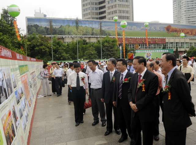 王國(guó)強(qiáng)副部長(zhǎng)(右二)高峰副省長(zhǎng)(右三)等領(lǐng)導(dǎo)參觀白米展板。巨鋒攝