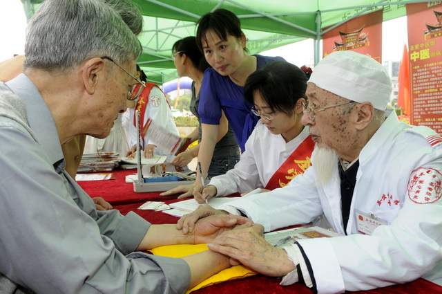 百歲名醫(yī)陳兆一到現(xiàn)場(chǎng)為患者義診。巨鋒攝