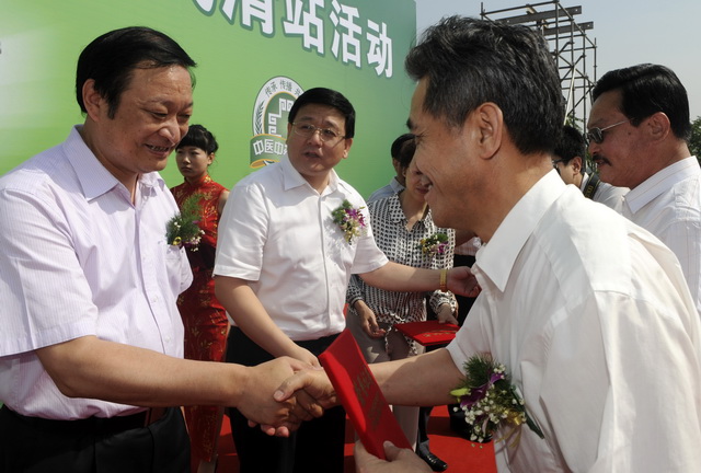 5月24日,在天津武清區(qū)啟動(dòng)儀式上王國(guó)強(qiáng)等領(lǐng)導(dǎo)為武清區(qū)評(píng)出的6位中醫(yī)名家頒發(fā)證書。記者巨鋒攝
