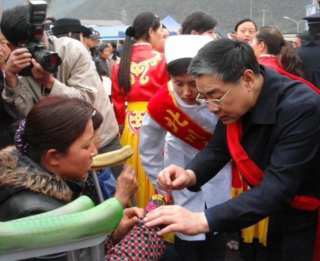 馬建中副局長(zhǎng)在四川省北川縣擂鼓鎮(zhèn)中醫(yī)中藥中國(guó)行義診現(xiàn)場(chǎng)慰問(wèn)群眾