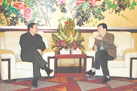 4月1日下午,重慶市市長(zhǎng)王鴻舉會(huì)見(jiàn)了在重慶調(diào)研的衛(wèi)生部副部長(zhǎng)、國(guó)家中醫(yī)藥管理局局長(zhǎng)王國(guó)強(qiáng)(左)一行。雙方就重慶的中醫(yī)藥事業(yè)發(fā)展進(jìn)行了會(huì)談。重慶市副市長(zhǎng)謝小軍、國(guó)家中醫(yī)藥管理局副局長(zhǎng)馬建中等出席。 記者" />