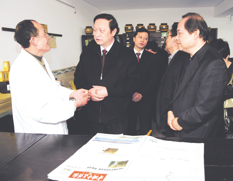 陽(yáng)春三月,春風(fēng)和煦。鄧小平故里四川廣安市廣安區(qū)協(xié)興鎮(zhèn)。 3月29日下午,衛(wèi)生部副部長(zhǎng)、國(guó)家中醫(yī)藥管理局局長(zhǎng)王國(guó)強(qiáng)參加“中醫(yī)中藥中國(guó)行”四川省廣安站活動(dòng)的啟動(dòng)儀式后,與國(guó)家中醫(yī)藥管理局副局長(zhǎng)馬建中及四川省有關(guān)人員一同,乘車(chē)來(lái)到距廣安市區(qū)6公里的協(xié)興鎮(zhèn)牌坊村衛(wèi)生站看望鄉(xiāng)村中醫(yī)王大均。 “妙手施仁術(shù)望聞問(wèn)切,辨證查機(jī)因寒熱虛實(shí)”,迎著這樣一副對(duì)聯(lián),王國(guó)強(qiáng)走進(jìn)鄉(xiāng)村中醫(yī)王大均及其兒子王敏工作的牌坊村衛(wèi)生站。看到64歲的王大均正在專注地給病人開(kāi)處方,王國(guó)強(qiáng)沒(méi)有打擾,在他身后駐足。 在牌坊村,王大均是十里八鄉(xiāng)聞名的老中醫(yī),1993年被評(píng)為全國(guó)優(yōu)秀鄉(xiāng)村醫(yī)生。他和兒子都取得鄉(xiāng)村醫(yī)生執(zhí)業(yè)證書(shū),為全村3300多人提供中醫(yī)藥服務(wù)。 當(dāng)?shù)匦l(wèi)生局人員介紹王國(guó)強(qiáng)時(shí),王大均接過(guò)話說(shuō):“我早就認(rèn)識(shí)王部長(zhǎng)了!在中國(guó)中醫(yī)藥報(bào)上‘見(jiàn)過(guò)’好多次了!”王大均的開(kāi)場(chǎng)白,使氣氛一下子活躍起來(lái)。 王大均從中國(guó)中醫(yī)藥報(bào)創(chuàng)刊時(shí)訂閱,迄今20年。他按照政策法規(guī)、臨床知識(shí)等內(nèi)容分類(lèi),剪下來(lái)貼在不同的本子上,至今積了厚厚一大摞。不僅自己看,還放在藥柜旁供人閱覽。最近兩周的報(bào)紙,則掛在門(mén)診部進(jìn)門(mén)的墻上。“中國(guó)中醫(yī)藥報(bào)對(duì)我?guī)椭纱罅?!每一期我都認(rèn)真看,你們的報(bào)紙?jiān)睫k越好!” 王國(guó)強(qiáng)關(guān)切地問(wèn)老人:“行醫(yī)多少年了?有什么困難嗎?” 王大均說(shuō):“我從衛(wèi)生站成立就開(kāi)始給老百姓看病,40多年了。中 醫(yī)藥方便、便宜,老百姓信得過(guò)。我們希望能有更多的機(jī)會(huì)參加中醫(yī)技能培訓(xùn),也能給我們參加職稱考試和評(píng)選的機(jī)會(huì)。” 王國(guó)強(qiáng)連連點(diǎn)頭,“目前衛(wèi)生部正在研究現(xiàn)有的醫(yī)師從業(yè)資格政策,對(duì)于師承和確有一技之長(zhǎng)者,將會(huì)有相關(guān)政策。而且,要增加對(duì)他們的中醫(yī)理論和技能培訓(xùn),考試要側(cè)重實(shí)際和經(jīng)驗(yàn)。” 牌坊村衛(wèi)生站有300多種中藥材,大部分中藥的炮制加工,都是王大均自己完成。王國(guó)強(qiáng)拉開(kāi)裝滿中藥的藥斗子,一邊看一邊問(wèn)藥材的質(zhì)量、產(chǎn)地、炮制等問(wèn)題,王大均一一回答。裝中藥的柜子上整齊地?cái)[放著一摞本子,這是王大均自2003年以來(lái)給病人開(kāi)的處方。“這都是我的醫(yī)案,將來(lái)我要認(rèn)真整理、總結(jié)。” 在王國(guó)強(qiáng)與王大均談話間,20多平方米的衛(wèi)生站已經(jīng)擠滿了人,圍繞中醫(yī)治病紛紛發(fā)表看法。 “王醫(yī)生有中醫(yī)絕活,我們都找他看病。” “中藥便宜,也沒(méi)啥子副作用,我愿意看中醫(yī)!” “腰痛,腿痛,讓老王按摩幾下,就好嘍!”…… 王國(guó)強(qiáng)說(shuō):“鄉(xiāng)村醫(yī)生要像王大均這樣,善于總結(jié)行醫(yī)經(jīng)驗(yàn)。衛(wèi)生局也要收集鄉(xiāng)村醫(yī)生的好經(jīng)驗(yàn)和一技之長(zhǎng),在農(nóng)村推廣,更好地推進(jìn)中醫(yī)藥進(jìn)農(nóng)村、進(jìn)社區(qū)、進(jìn)家庭。”他握著王大均的手,“感謝您幾十年如一日為鄉(xiāng)村老百姓服務(wù),精神可嘉,值得學(xué)習(xí)!” “這是醫(yī)生的職責(zé)!”王大均說(shuō),“我的孫子、孫女也在跟我學(xué)習(xí)中醫(yī)。”王大均12歲的小孫子王淵,手里拿著一本《藥性歌括四百味》,靦腆地站在爺爺旁邊。 王國(guó)強(qiáng)摸著孩子的頭說(shuō):“你培養(yǎng)得好啊,以后要讓他們讀大學(xué),讀中醫(yī)藥大學(xué),成為名中醫(yī),為老百姓服務(wù)。” 隨后,王國(guó)強(qiáng)等又調(diào)研了協(xié)興中心醫(yī)院衛(wèi)生院,并與廣安區(qū)部分鄉(xiāng)村中醫(yī)進(jìn)行了座談。在聽(tīng)取他們對(duì)農(nóng)村中醫(yī)藥工作的意見(jiàn)后,王國(guó)強(qiáng)表示,國(guó)家中醫(yī)藥管理局將高度重視和推動(dòng)解決大家提出的鄉(xiāng)村中醫(yī)職稱評(píng)定、技能培訓(xùn)等問(wèn)題。“衛(wèi)生和中醫(yī)藥工作的重點(diǎn)在農(nóng)村,與農(nóng)民幸福安康息息相關(guān)。我們要努力做好農(nóng)村中醫(yī)藥工作,充分滿足廣大農(nóng)民對(duì)中醫(yī)藥的需求。” (記者 柴玉)