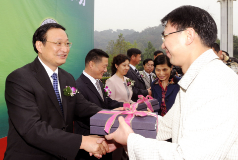 王國強(左一)向醫(yī)院代表贈《越醫(yī)千年》 記者 巨鋒/攝