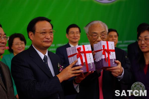 國家中醫(yī)藥管理局辦公室副主任兼新聞辦主任蔣健代表全國組委會向上海贈送中醫(yī)藥科普圖書