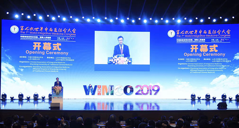 2019年12月5日-8日,由中國中西醫(yī)結(jié)合學會、山東中醫(yī)藥大學主辦,山東中西醫(yī)結(jié)合學會、山東中醫(yī)藥大學附屬醫(yī)院承辦的第七次世界中西醫(yī)結(jié)合大會在山東濟南隆重召開,本次會議主題是“中西醫(yī)結(jié)合傳承發(fā)展,保障人類健康”。國家中醫(yī)藥管理局黨組成員、副局長孫達,山東省副省長孫繼業(yè),中國工程院院士、中國中西醫(yī)結(jié)合學會會長陳香美,中國科學院院士、國醫(yī)大師陳可冀,山東中醫(yī)藥大學黨委副書記、校長高樹中等出席開幕式并致辭,山東省政協(xié)副主席趙家軍等出席開幕式。