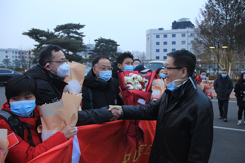 國(guó)家中醫(yī)藥管理局副局長(zhǎng)孫達(dá),北京中醫(yī)藥大學(xué)校長(zhǎng)徐安龍等到首都機(jī)場(chǎng)為醫(yī)療隊(duì)送行。孫達(dá)代表國(guó)家中醫(yī)藥管理局向醫(yī)療隊(duì)每一位成員表達(dá)了崇高敬意和衷心感謝,表示深深為大家“舍小家為大家”的奉獻(xiàn)精神和“舍我其誰”的擔(dān)當(dāng)精神所感動(dòng),希望醫(yī)療隊(duì)堅(jiān)決貫徹落實(shí)以習(xí)近平同志為核心的黨中央交給中醫(yī)藥系統(tǒng)的重大政治任務(wù),不辱使命、不負(fù)重托,堅(jiān)持中西醫(yī)結(jié)合,積極參與一線防控救治各項(xiàng)工作。孫達(dá)囑托醫(yī)療隊(duì)成員一定加強(qiáng)自我防護(hù),如果個(gè)人家庭遇到困難,隨時(shí)向所在單位黨組織和國(guó)家中醫(yī)藥管理局提出,一定幫助大家解決好后方困難。