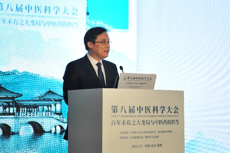陳竺作題為《傳承精華 守正創(chuàng)新 在百年未有之大變局中踐行中醫(yī)藥護(hù)佑生命的使命擔(dān)當(dāng)》的主旨報(bào)告。他指出,農(nóng)工黨中央和國家中醫(yī)藥管理局已共同舉辦了八屆中醫(yī)科學(xué)大會(huì)。作為科學(xué)推動(dòng)中醫(yī)藥事業(yè)傳承和發(fā)展的重要品牌,中醫(yī)科學(xué)大會(huì)搭建了政府引導(dǎo)、社會(huì)參與、學(xué)術(shù)推動(dòng)的平臺(tái),已成為中醫(yī)界的盛會(huì),具有良好的社會(huì)反響,得到了中共中央的高度肯定。中醫(yī)藥千百年來堅(jiān)持傳承精華、守正創(chuàng)新,為人類抗擊疫病作出重大貢獻(xiàn)。面對世紀(jì)疫情,中西醫(yī)聯(lián)手鑄牢生命防線,成為我國新冠疫情防控的一大亮點(diǎn),為全球抗疫貢獻(xiàn)了中國智慧和中國方案。當(dāng)今時(shí)代,中醫(yī)藥的傳承、發(fā)揚(yáng)和創(chuàng)新因現(xiàn)代科技的融入迎來了新的機(jī)遇,要加快推進(jìn)中醫(yī)藥傳承保護(hù)和科技創(chuàng)新,統(tǒng)籌推進(jìn)文獻(xiàn)傳承和活態(tài)傳承,加強(qiáng)中醫(yī)藥人才隊(duì)伍建設(shè),深入發(fā)掘中醫(yī)藥寶庫中的精華,推進(jìn)產(chǎn)學(xué)研一體化,釋放新供給,創(chuàng)造新的經(jīng)濟(jì)增長集群,促進(jìn)經(jīng)濟(jì)調(diào)結(jié)構(gòu)、轉(zhuǎn)方式,為構(gòu)建新發(fā)展格局提供支撐。希望廣大專家學(xué)者以開放包容的心態(tài),促進(jìn)傳統(tǒng)醫(yī)學(xué)和現(xiàn)代醫(yī)學(xué)更好結(jié)合,堅(jiān)持中西醫(yī)并重,為促進(jìn)民心相通、共建人類衛(wèi)生健康共同體作出更大貢獻(xiàn)。