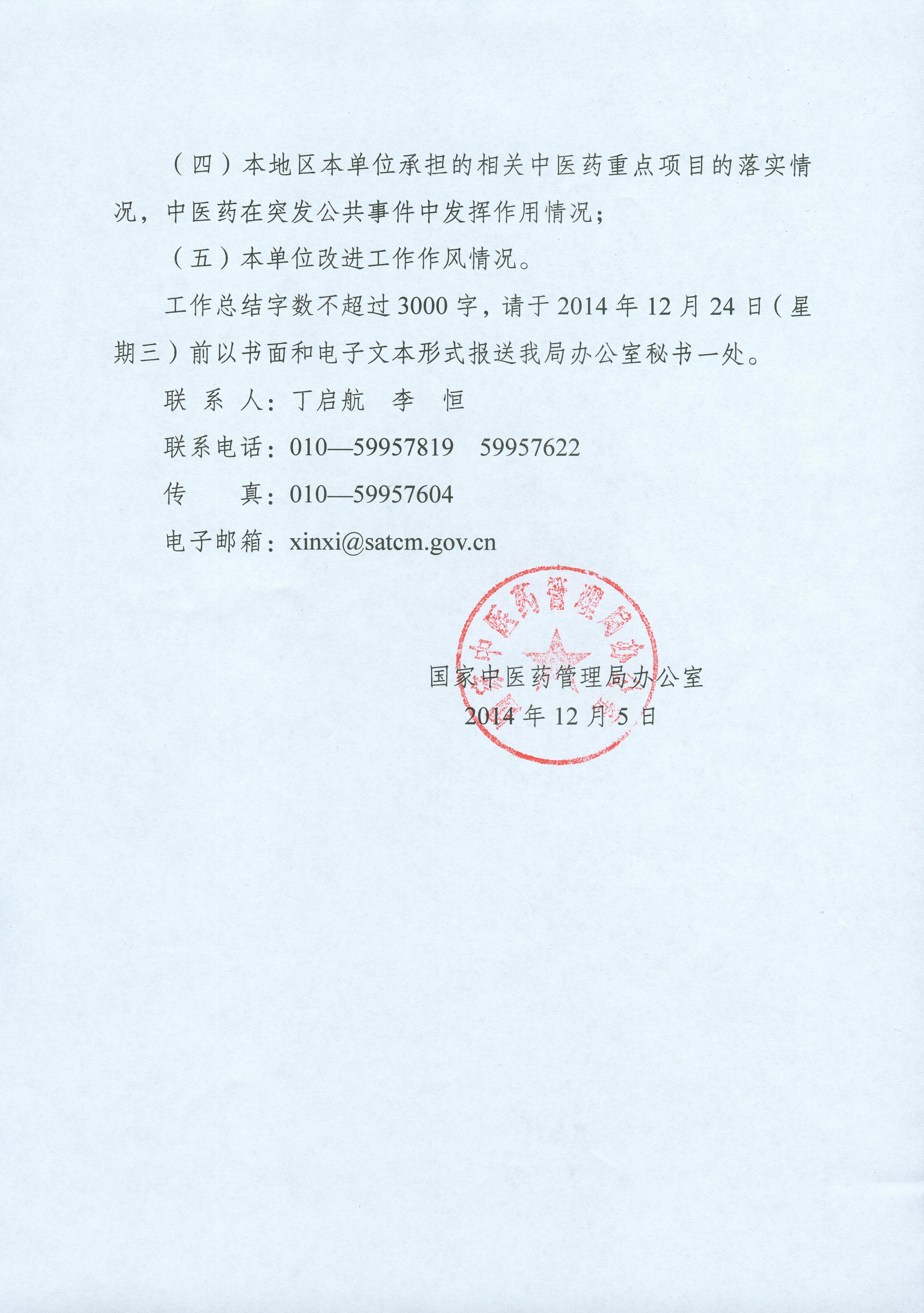 國(guó)家中醫(yī)藥管理局辦公室2014年12月5日