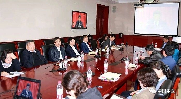 國家中醫(yī)藥管理局組織集中收看大會開幕會。 馬更/攝