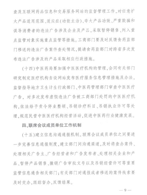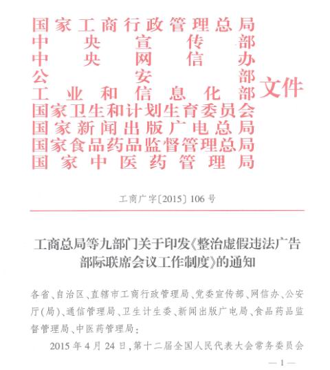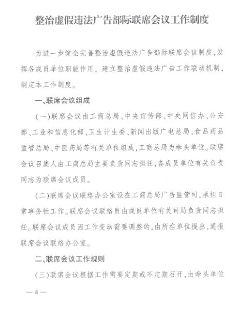 工商總局等九部門關于印發(fā)《整治虛假違法廣告部際聯(lián)席會議工作制度》的通知