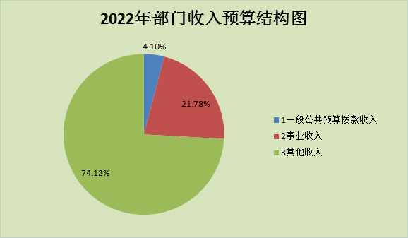 2022年收入預算3800.25萬元,其中:一般公共預算撥款收入155.46萬元,占4.10%,事業(yè)收入828萬元,占21.78%,其他收入2816.79萬元,占74.12%。