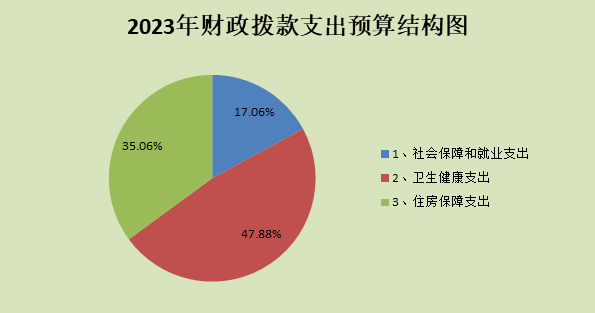 2023年支出預(yù)算3592.94萬元,其中:社會保障和就業(yè)支出99.01萬元,占2.76%,衛(wèi)生健康支出3358.45萬元,占93.47%,住房保障支出135.48萬元,占3.77% 。