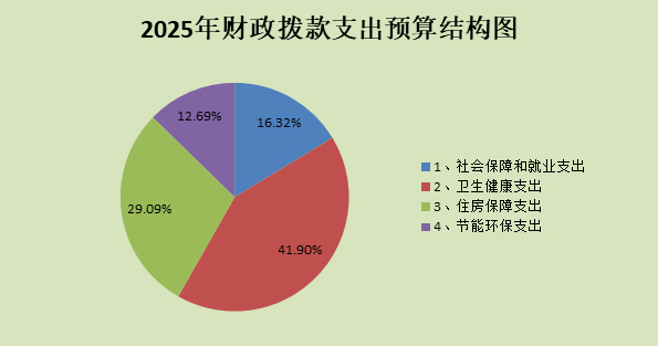 2025年支出預(yù)算4117.49萬元,其中:社會保障和就業(yè)支出152萬元,占3.69%;衛(wèi)生健康支出3770.79萬元,占91.58%;住房保障支出171.5萬元,占4.17% ;節(jié)能環(huán)保支出23.2萬元,占0.56%。