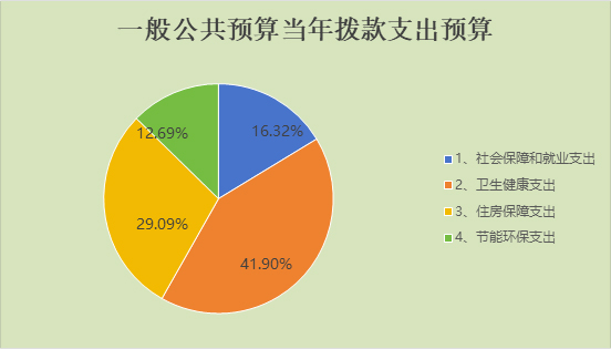 社會保障和就業(yè)支出29.82萬元,占16.32%;衛(wèi)生健康支出76.58萬元,占41.9%;住房保障支出53.16萬元,占29.09%;節(jié)能環(huán)保支出23.2萬元,占12.69%。