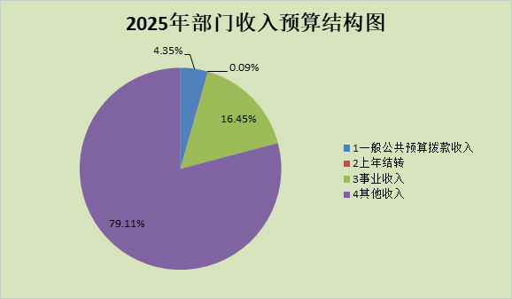 2025年收入預(yù)算4117.49萬元,其中:一般公共預(yù)算撥款收入179.24萬元,占4.35%;上年結(jié)轉(zhuǎn)3.52萬元,占0.09%;事業(yè)收入677.5萬元,占16.45%;其他收入3257.23萬元,占79.11%。
