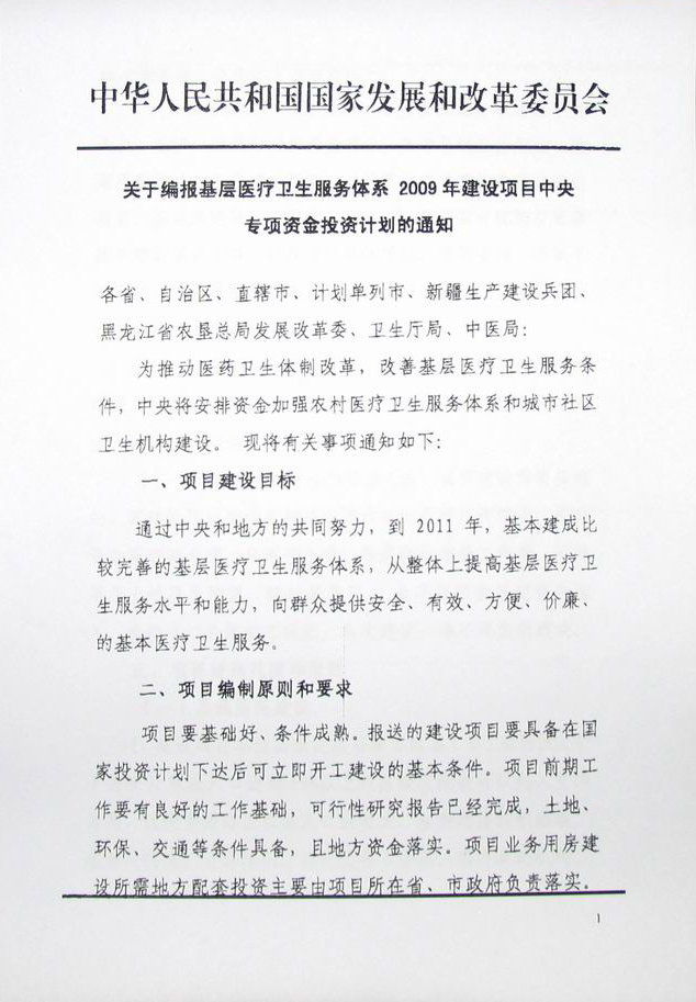 關(guān)于編報(bào)基層醫(yī)療衛(wèi)生服務(wù)體系 2009年建設(shè)項(xiàng)目中央