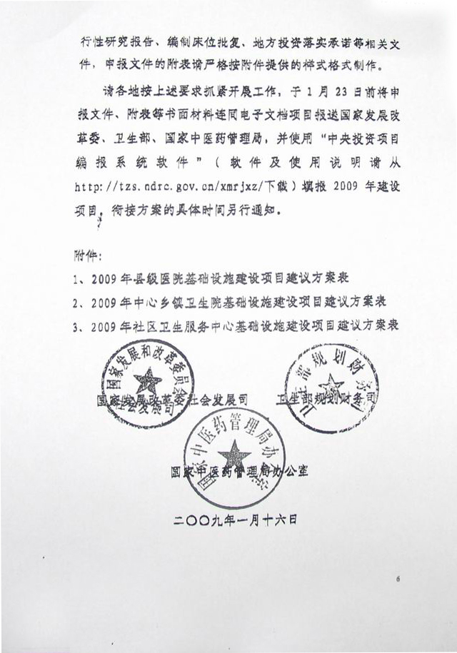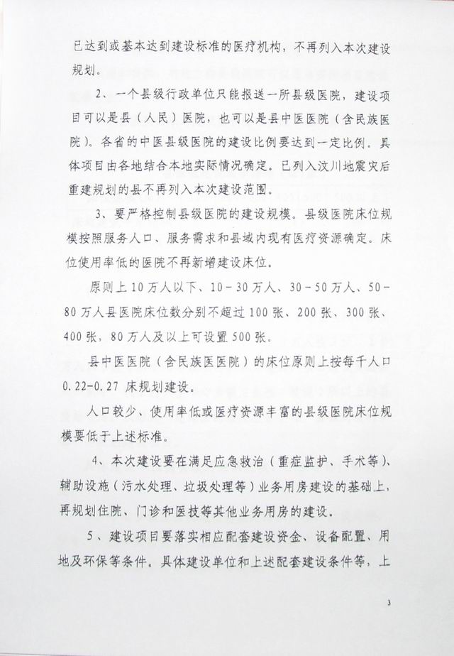 2、一個(gè)縣級行政單位只能報(bào)送一所縣級醫(yī)院,建設(shè)項(xiàng)目可以是縣(人民)醫(yī)院,也可以是縣中醫(yī)醫(yī)院(含民族醫(yī)院)。各省的中醫(yī)縣級醫(yī)院的建設(shè)比例要達(dá)到一定比例。具體項(xiàng)目由各地結(jié)合本地實(shí)際情況確定。已列入汶川地震災(zāi)后重建規(guī)劃的縣不再列入本次建設(shè)范圍。