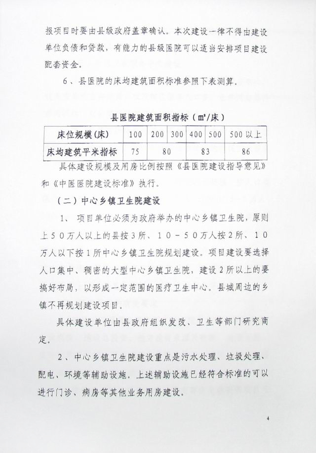 2、中心鄉(xiāng)鎮(zhèn)衛(wèi)生院建設(shè)重點(diǎn)是污水處理、垃圾處理、配電、環(huán)境等輔助設(shè)施。上述輔助設(shè)施已經(jīng)符合標(biāo)準(zhǔn)的可以進(jìn)行門診、病房等其他業(yè)務(wù)用房建設(shè)。