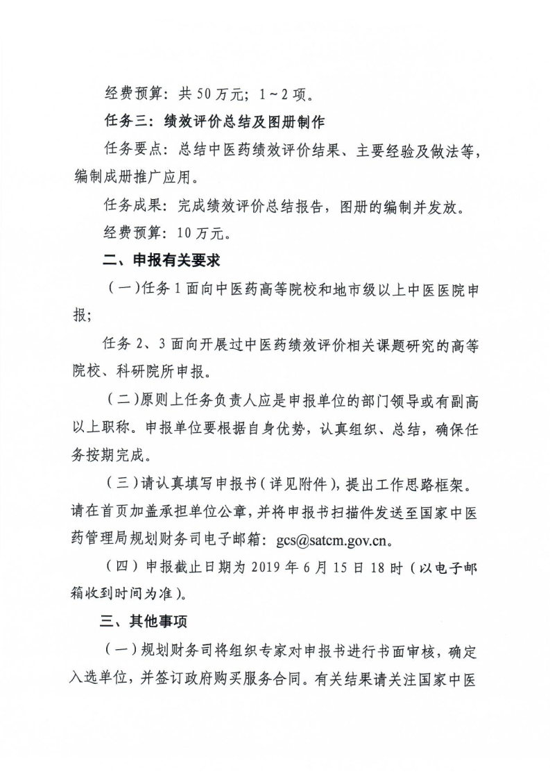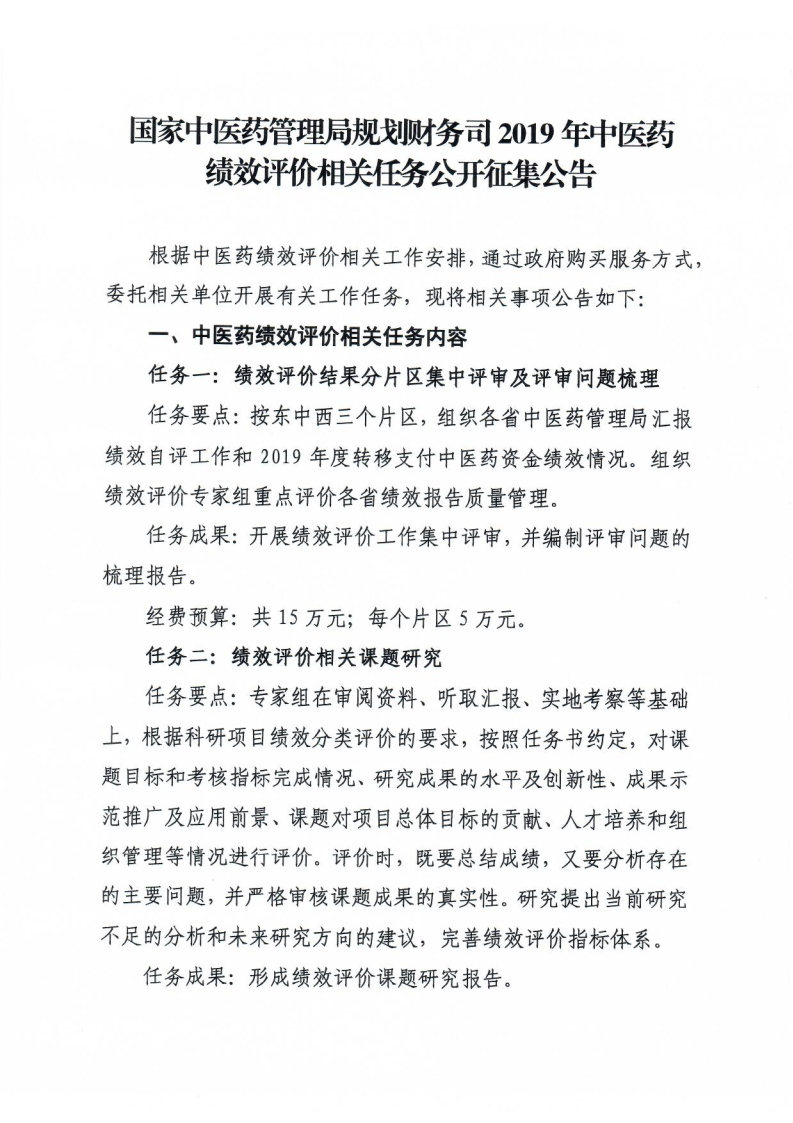 國(guó)家中醫(yī)藥管理局規(guī)劃財(cái)務(wù)司2019年中醫(yī)藥績(jī)效評(píng)價(jià)相關(guān)任務(wù)公開(kāi)征集公告