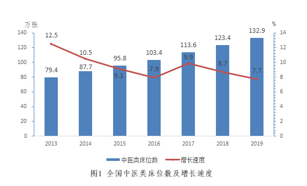 2019年全國每萬人口中醫(yī)類床位數(shù)①達9.5張,比2018年的8.8張,增加了0.7張。2019年全國每萬人口中醫(yī)類醫(yī)院床位數(shù)達7.8張,全國中醫(yī)類醫(yī)院床位達1,091,630張,相對于2018年的1,021,548張增加了70,082張,增幅為6.9%。目前,中醫(yī)類醫(yī)院床位占全國醫(yī)院床位數(shù)的比例達到15.9%,比上年增長0.2個百分點。其中:中醫(yī)醫(yī)院932,578張、中西醫(yī)結合醫(yī)院117,672張、民族醫(yī)醫(yī)院41,380張,分別比2018年增加了60,526張、7,093張、2,463張,增幅為6.9%、6.4%、6.3%(2018年中醫(yī)醫(yī)院872,052張、中西醫(yī)結合醫(yī)院110,579張、民族醫(yī)醫(yī)院38,917張)(見表1)。
