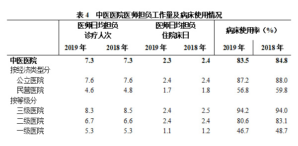 (二)中醫(yī)類醫(yī)院醫(yī)師工作負荷及病床使用情況