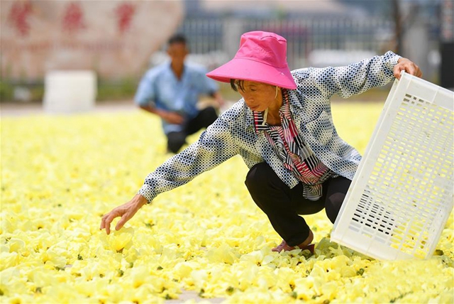 圖為樂安縣農戶在晾曬黃蜀葵。 新華社記者 陳曄華攝