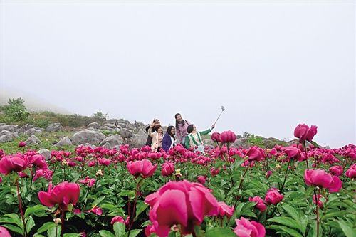 湖南省雙峰縣甘棠鎮(zhèn)地處婁邵干旱走廊,石漠化非常嚴重,頑石遍野。近年來,該鎮(zhèn)因地制宜,以省級扶貧村祠堂灣、四方村等為中心,發(fā)動貧困群眾加入合作社連片種植芍藥、百合等耐旱中藥材,打造集藥材種植、觀光旅游于一體的產業(yè)扶貧基地。4月13日,該縣舉行“2018雙峰·甘棠首屆芍藥花文化旅游節(jié)”,吸引了眾多游客前來觀賞。圖為游客在芍藥花基地游玩。