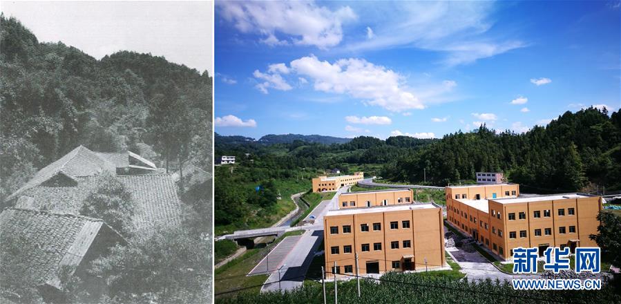 上游務川縣長江村。拼版照片:左圖為20世紀六七十年代的貴州省遵義市務川縣浞水鎮(zhèn)長江村;右圖為貴州省遵義市務川縣浞水鎮(zhèn)長江村新貌(務川縣委宣傳部提供)。新華社發(fā)(資料照片)
