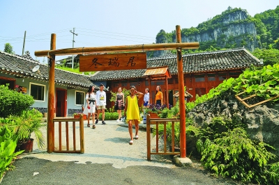 2014年起,情況發(fā)生了改變。周子婷介紹,余慶縣2014年引進(jìn)了一家公司,發(fā)展鄉(xiāng)村旅游。為了留下“摘摘果蔬、吃吃飯,當(dāng)天就走”的游客,政府與這家公司一起,為紅渡村設(shè)計(jì)出了“旅居農(nóng)家”模式。在這個(gè)模式下,村民不僅可以出租閑置的田地,設(shè)計(jì)成創(chuàng)意農(nóng)業(yè)景觀,還可以出租閑置的房屋,統(tǒng)一標(biāo)準(zhǔn)改造成客棧,通過分紅的方式得到收益。同時(shí),推豆腐、打糍粑等民俗游項(xiàng)目也得到開發(fā),使村內(nèi)的紅色景點(diǎn)旅游體驗(yàn)進(jìn)一步提升。