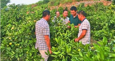 浙江省農(nóng)業(yè)科學(xué)院助理研究員李發(fā)勇(右二)在指導(dǎo)柑橘生產(chǎn)。光明圖片