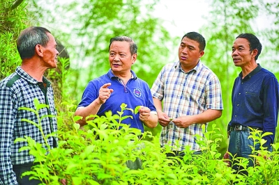 浙江大學(xué)教授汪自強(qiáng)(左二)指導(dǎo)農(nóng)業(yè)生產(chǎn)。光明圖片