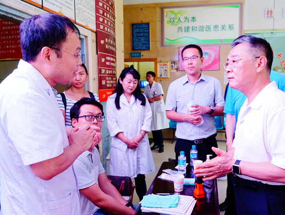 王國強(右一)慰問義診專家和群眾。 本報實習(xí)記者 葛偉韜攝