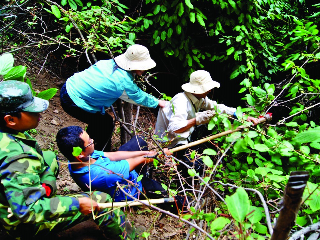 事實(shí)上,普查中遇到風(fēng)雨是常事。雨后山林泥土松散,背著普查工具的隊(duì)員們在這種環(huán)境中隨時都可能摔跤,大家常常相互攙扶,攀著樹枝、藤蔓一步步前行……盡管條件艱險(xiǎn),隊(duì)員們卻“苦”并快樂著,因?yàn)樗麄冊谧鲆患饬x深遠(yuǎn)的大事。