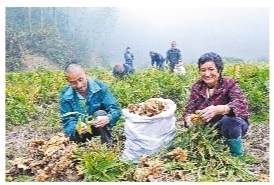 近年來,江西省樟樹市積極引導(dǎo)各鄉(xiāng)鎮(zhèn)建立生姜、大蒜、瓜果蔬菜、中藥材等產(chǎn)業(yè)扶貧基地,引領(lǐng)貧困群眾發(fā)展特色產(chǎn)業(yè)或入股分紅,為貧困戶創(chuàng)造可持續(xù)性收入,有效帶動了貧困群眾增收脫貧。據(jù)了解,樟樹市已建立各類產(chǎn)業(yè)扶貧基地40余個,帶動6800余戶貧困戶脫貧。圖為樟樹市店下鎮(zhèn)大汗村貧困戶在生姜基地收獲生姜。