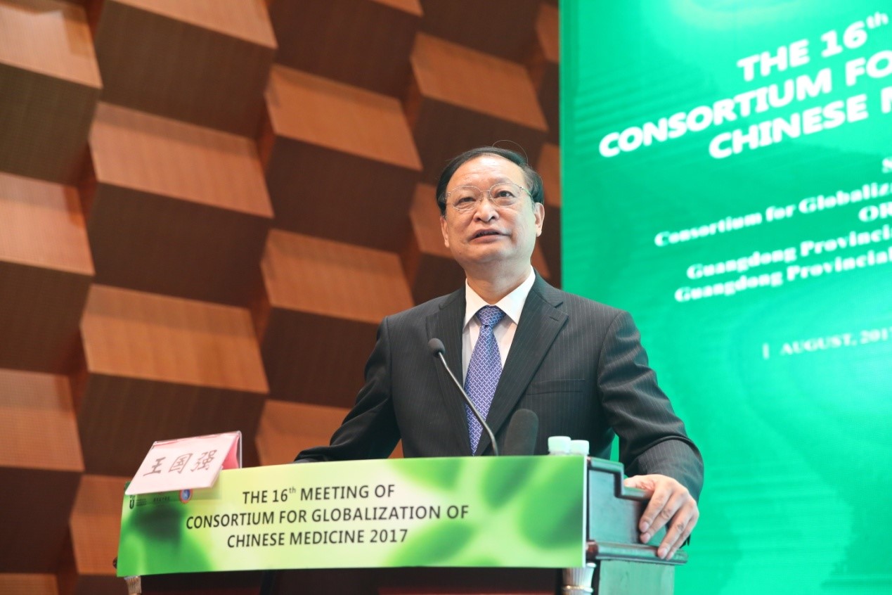 2017年8月18日至20日,第16屆中藥全球化聯(lián)盟學(xué)術(shù)年會在廣州召開。國家衛(wèi)生和計劃生育委員會副主任、國家中醫(yī)藥管理局局長王國強應(yīng)邀出席開幕式并致辭。廣東省人民政府黨組成員陳云賢,中藥全球化聯(lián)盟(CGCM)主席、耶魯大學(xué)講座教授、臺灣中央研究院院士鄭永齊教授,美國國立癌癥研究所杰弗里·懷特(Jeffery White)教授、賈立斌教授,中國科學(xué)院院士裴鋼、中國工程院院士姚新生,中國工程院院士張伯禮等主要嘉賓也一同出席。