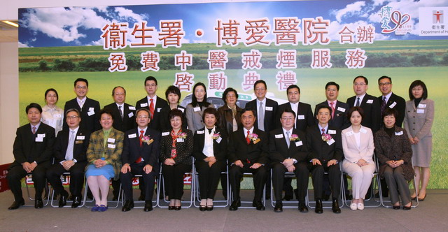 由香港政府控?zé)熮k和香港博愛(ài)醫(yī)院共同開展的中醫(yī)戒煙社區(qū)服務(wù)項(xiàng)目啟動(dòng)儀式于2010年3月29日在香港舉行。國(guó)家中醫(yī)藥管理局國(guó)際合作司副司長(zhǎng)、港澳臺(tái)辦公室主任王笑頻赴港出席啟動(dòng)儀式,并代表國(guó)家中醫(yī)藥管理局致辭。出席啟動(dòng)儀式的還有香港立法會(huì)衛(wèi)生事務(wù)委員會(huì)主席李國(guó)麟議員、香港衛(wèi)生署署長(zhǎng)林秉恩、廣東省衛(wèi)生廳副廳長(zhǎng)彭煒等、香港博愛(ài)醫(yī)院董事局主席潘兆文等。 國(guó)家中醫(yī)藥管理局對(duì)香港政府推行的“中醫(yī)戒煙”計(jì)劃十分支持,作為落實(shí)兩地中醫(yī)藥合作協(xié)議的一項(xiàng)重要內(nèi)容,內(nèi)地多次派出專家赴港提供技術(shù)幫助。兩地中醫(yī)藥專家深入研究、反復(fù)論證,既充分借鑒內(nèi)地中醫(yī)針灸在戒煙實(shí)踐中的應(yīng)用經(jīng)驗(yàn),又有效結(jié)合香港吸煙人群的體質(zhì)、地域特色,提出了以中醫(yī)針灸為主并配以全程健康輔導(dǎo)的綜合性控?zé)熂夹g(shù)方案,即將在博愛(ài)醫(yī)院的中醫(yī)社區(qū)服務(wù)流動(dòng)診所開展此項(xiàng)服務(wù)。 參與該項(xiàng)目的中醫(yī)針灸專家也可借此項(xiàng)工作的開展,系統(tǒng)總結(jié)、評(píng)估中醫(yī)藥戒煙的臨床規(guī)律和療效基礎(chǔ)。這對(duì)于拓展中醫(yī)藥服務(wù)領(lǐng)域,提升居民健康水平以及進(jìn)一步推動(dòng)中醫(yī)藥在香港的發(fā)展和兩地合作具有十分重要的意義。