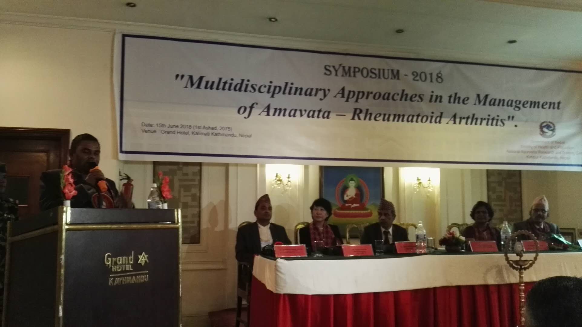 6月15日,由尼泊爾衛(wèi)生部支持、尼泊爾國家阿育吠陀研究與培訓中心主辦的2018國際類風濕性關節(jié)炎多學科管理會議在加德滿都召開。尼泊爾副總理兼衛(wèi)生與人口部長阿坡達·亞達維,尼泊爾衛(wèi)生與人口部常務秘書普什帕·夏海麗,來自中國國家中醫(yī)藥管理局和印度衛(wèi)生部的代表出席了會議。
