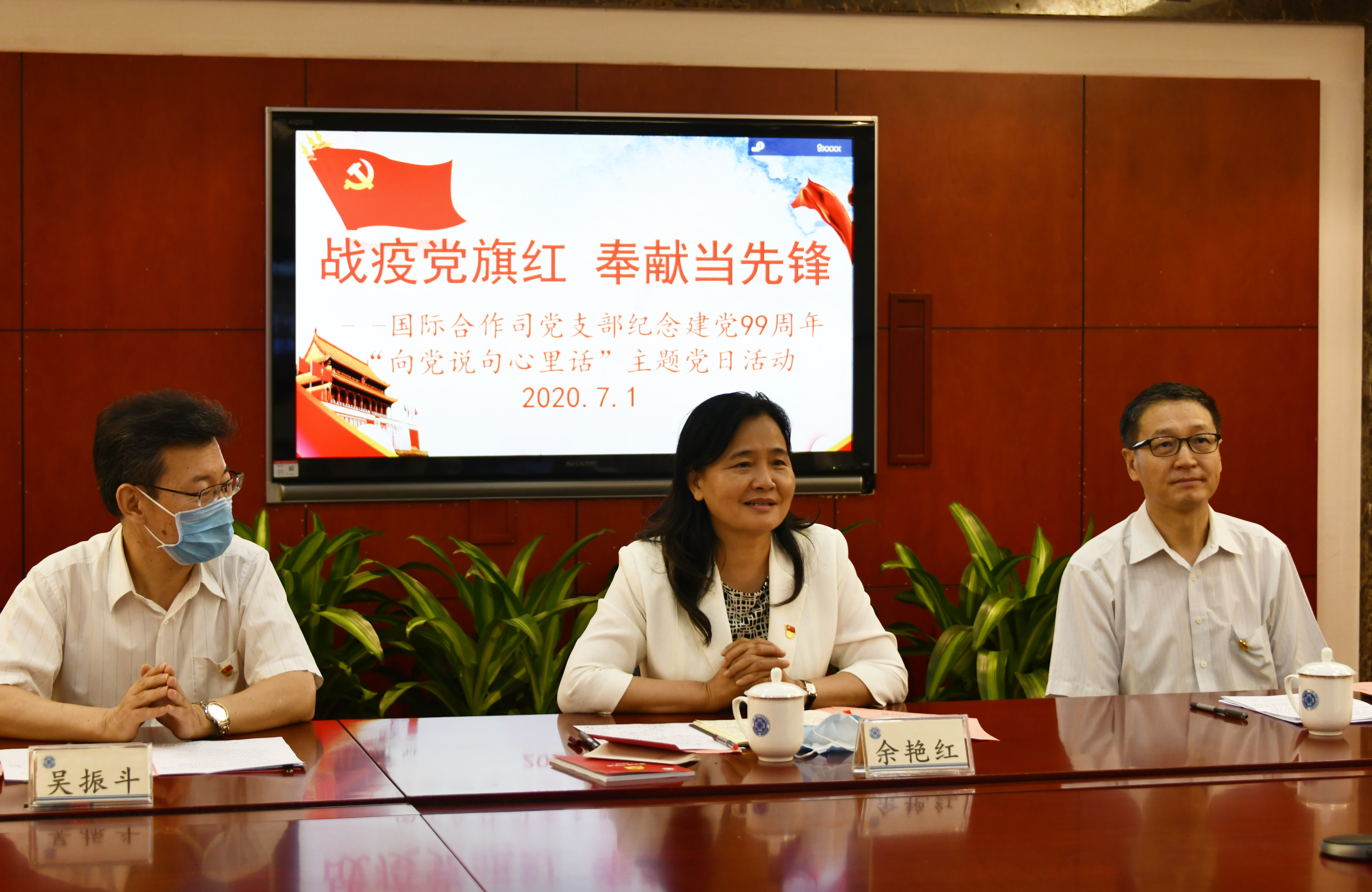 為慶祝中國共產(chǎn)黨99周年華誕,7月1日上午,國家中醫(yī)藥管理局國際合作司黨支部在局機(jī)關(guān)舉辦“戰(zhàn)疫黨旗紅 奉獻(xiàn)當(dāng)先鋒——紀(jì)念建黨99周年‘向黨說句心里話’主題黨日活動”并重溫入黨誓詞,全體黨員同志在鮮紅的黨旗下,高舉右拳,莊嚴(yán)宣誓。國家衛(wèi)生健康委黨組成員、國家中醫(yī)藥管理局黨組書記余艷紅,國家中醫(yī)藥管理局黨組成員、副局長孫達(dá)以普通黨員身份參加活動并分享體會。