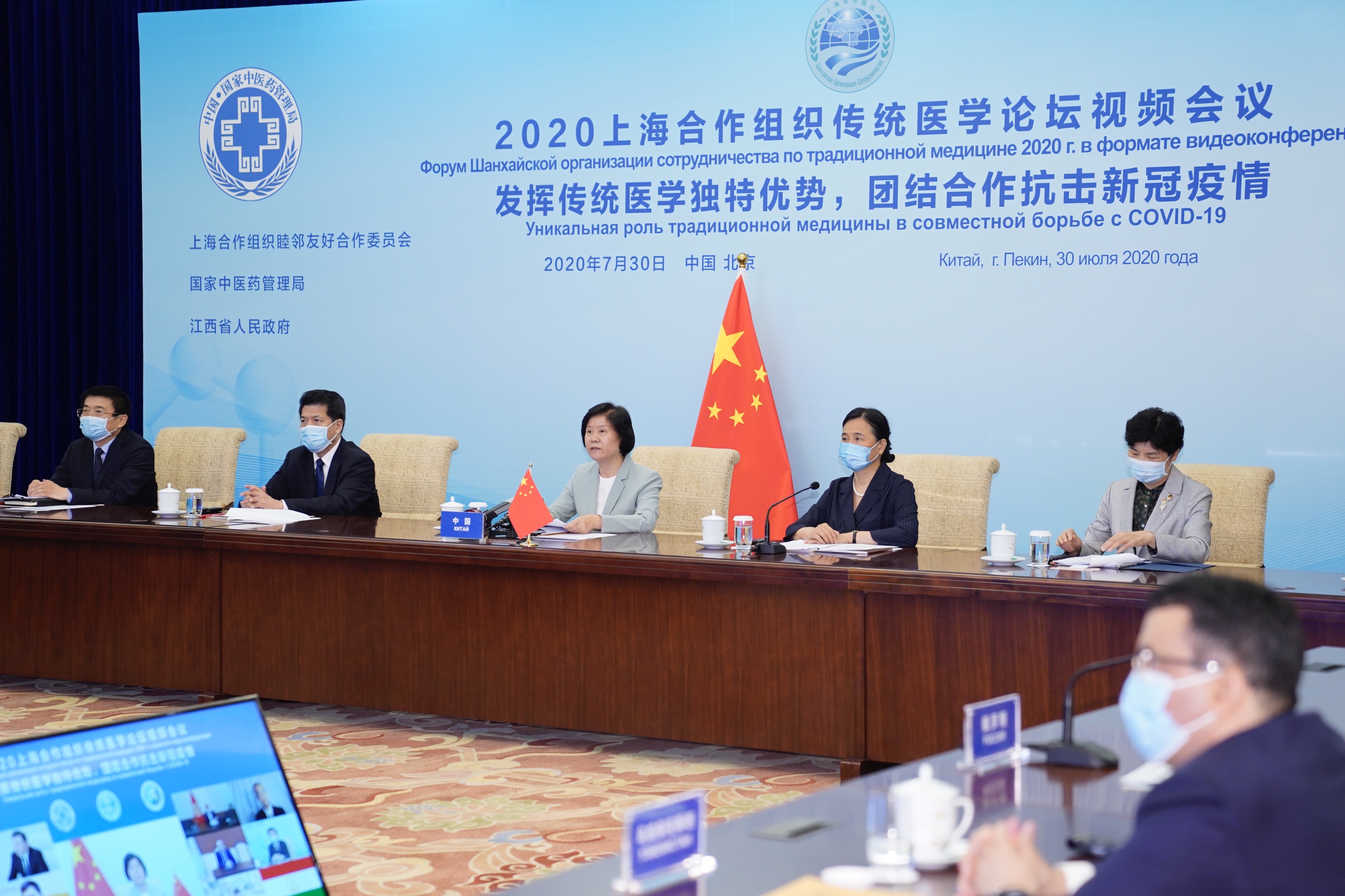 7月30日,2020上海合作組織傳統(tǒng)醫(yī)學(xué)論壇視頻會(huì)議舉辦。會(huì)議以“發(fā)揮傳統(tǒng)醫(yī)學(xué)獨(dú)特優(yōu)勢(shì),團(tuán)結(jié)合作抗擊新冠疫情”為主題,全國(guó)人大常委會(huì)副委員長(zhǎng)、上海合作組織睦鄰友好合作委員會(huì)主席沈躍躍,吉爾吉斯斯坦副總理伊斯梅洛娃,烏茲別克斯坦副總理穆薩耶夫,上合組織秘書(shū)長(zhǎng)諾羅夫,世界衛(wèi)生組織傳統(tǒng)、補(bǔ)充與整合醫(yī)學(xué)部主任張奇,江西省委書(shū)記劉奇,國(guó)家衛(wèi)生健康委黨組成員、國(guó)家中醫(yī)藥管理局黨組書(shū)記余艷紅出席開(kāi)幕式并代表主辦單位致辭,中國(guó)政府歐亞事務(wù)特別代表李輝,國(guó)家中醫(yī)藥管理局局長(zhǎng)于文明,國(guó)家衛(wèi)生健康委原副主任、上合組織睦鄰友好合作委員會(huì)副主席崔麗,江西省委常委、省委秘書(shū)長(zhǎng)趙力平,副省長(zhǎng)孫菊生、陳小平,省政協(xié)副主席劉曉莊出席會(huì)議。出席視頻會(huì)議的還有上合組織成員國(guó)政要及衛(wèi)生部門(mén)負(fù)責(zé)人,上合組織成員國(guó)、觀察員國(guó)和對(duì)話(huà)伙伴傳統(tǒng)醫(yī)學(xué)專(zhuān)家、學(xué)者。江西省長(zhǎng)易煉紅主持開(kāi)幕式。