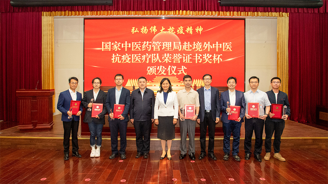 5月31日,國(guó)家中醫(yī)藥管理局與國(guó)務(wù)院國(guó)有資產(chǎn)監(jiān)督管理委員會(huì)共同舉辦赴境外中醫(yī)抗疫醫(yī)療隊(duì)榮譽(yù)證書獎(jiǎng)杯頒發(fā)儀式,對(duì)赴境外救治感染新冠肺炎中資企業(yè)員工的三支中醫(yī)抗疫醫(yī)療隊(duì)進(jìn)行表彰。國(guó)家衛(wèi)生健康委黨組成員、國(guó)家中醫(yī)藥管理局黨組書記余艷紅,國(guó)務(wù)院國(guó)有資產(chǎn)監(jiān)督管理委員會(huì)境外辦副主任柳長(zhǎng)森出席儀式并講話,國(guó)家中醫(yī)藥管理局黨組成員、副局長(zhǎng)孫達(dá)主持活動(dòng)。