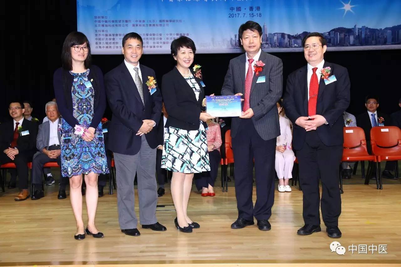 大會為國家中醫(yī)藥管理局國際合作司司長王笑頻(中)頒發(fā)感謝狀