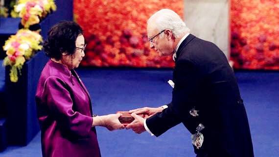 44年后,瑞典斯德哥爾摩音樂(lè)廳,還是那雙手,堅(jiān)定地接過(guò)了諾貝爾生理學(xué)或醫(yī)學(xué)獎(jiǎng)。這一刻,這雙手的主人被世界矚目,她代表著中國(guó)女性、中國(guó)科學(xué)家和中國(guó)人的風(fēng)采,她就是屠呦呦。
