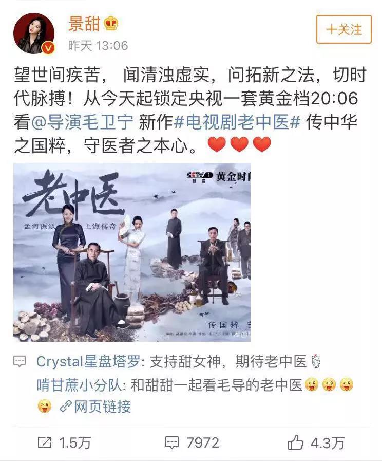 孫儷、景甜、陳曉等明星也發(fā)微博表示支持