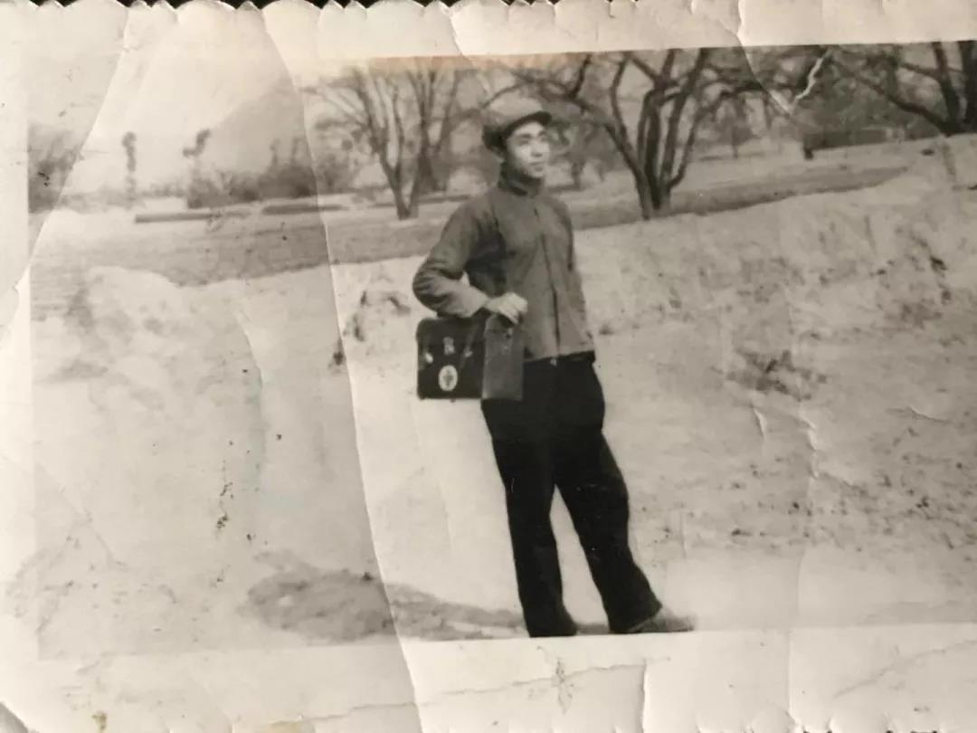 頭戴藍(lán)布帽,身著中山裝,腳踩布膠鞋,身挎醫(yī)藥箱。1968年,19歲的陳寶明站在田埂上遠(yuǎn)眺,清秀的面龐和清澈的眼神透露出一個(gè)少年對(duì)人生與未來(lái)的無(wú)限遐想。這一年,陳寶明中學(xué)畢業(yè)成為了一名赤腳醫(yī)生。一張站在田埂遠(yuǎn)眺的照片拍下了陳寶明青澀的19歲。這張不太清晰的老照片,記錄了陳寶明當(dāng)赤腳醫(yī)生的過(guò)去,也如同他奉獻(xiàn)基層的人生的一個(gè)隱喻。