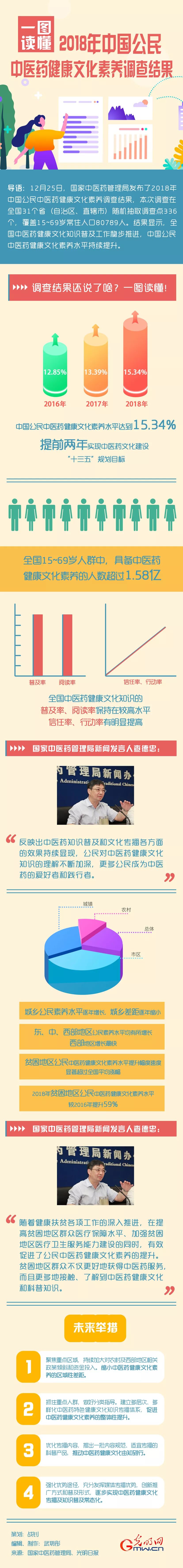 12月25日,國家中醫(yī)藥管理局發(fā)布了2018年中國公民中醫(yī)藥健康文化素養(yǎng)調(diào)查結(jié)果,本次調(diào)查在全國31個省(自治區(qū)、直轄市)隨機抽取調(diào)查點336個,覆蓋15~69歲常住人口80789人。結(jié)果顯示,全國中醫(yī)藥健康文化知識普及工作穩(wěn)步推進,中國公民中醫(yī)藥健康文化素養(yǎng)水平持續(xù)提升。調(diào)查結(jié)果還說了啥?一圖為您解答↓↓