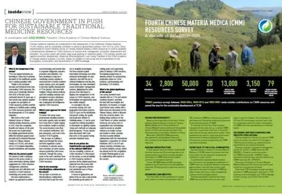 中藥資源是中醫(yī)藥產(chǎn)業(yè)發(fā)展的物質(zhì)基礎(chǔ),國家高度重視中藥資源保護和可持續(xù)利用工作。上世紀60、70、80年代,分別開展3次全國范圍的中藥資源普查。隨著世界各地對中醫(yī)藥醫(yī)療保健服務(wù)需求的不斷增加及中醫(yī)藥相關(guān)產(chǎn)業(yè)蓬勃發(fā)展,中藥資源的需求量也不斷增加,中藥資源狀況發(fā)生了巨大變化。2011-2020年,國家中醫(yī)藥管理局組織開展了第四次全國中藥資源普查,對全國31個省近2800個縣開展中藥資源調(diào)查,獲取了200多萬條調(diào)查記錄,匯總了1.3萬多種中藥資源的種類和分布等信息,其中有上千種為中國特有種。發(fā)現(xiàn)新物種79種,其中60%以上的物種具有潛在的藥用價值。組建了5萬余人的中藥資源調(diào)查隊伍;構(gòu)建了由1個中心平臺,28個省級中藥原料質(zhì)量監(jiān)測技術(shù)服務(wù)中心和66個縣級監(jiān)測站組成的中藥資源動態(tài)監(jiān)測體系,開展重點中藥材品種的價格、流通量和種植面積等信息服務(wù),實時掌握中藥材的產(chǎn)量、流通量、價格和質(zhì)量等信息;建設(shè)了28個中藥材種子種苗繁育基地和2個中藥材種質(zhì)資源庫,形成了中藥資源保護和可持續(xù)利用的長效機制。2020年1月2日,《Nature》發(fā)表專題報道,詳細介紹了在中國政府領(lǐng)導下的第四次全國中藥資源普查取得的重要成果及其對促進中藥資源可持續(xù)利用和國民經(jīng)濟發(fā)展的重要貢獻。