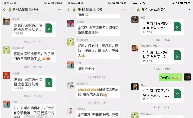 1月25日中午,醫(yī)院骨傷科五區(qū)張國忠主任接到醫(yī)院緊急“組建通州區(qū)應(yīng)急醫(yī)療隊(duì)(第二梯隊(duì))”備戰(zhàn)的通知。他第一時(shí)間報(bào)名,隨后醫(yī)護(hù)人員用接力的方式將報(bào)名延續(xù)。