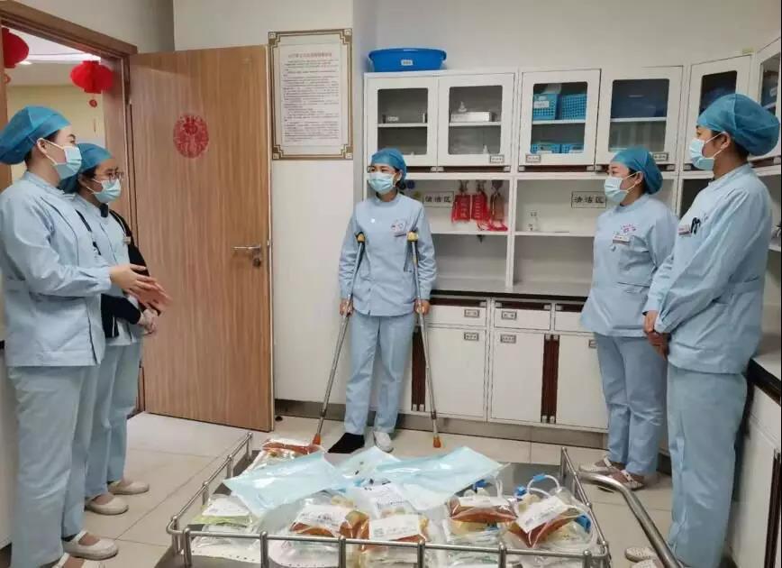 節(jié)后的一天,石家莊市中醫(yī)院東院區(qū)骨傷科畢靖靖護(hù)士長在下班途中不慎跌倒受傷,造成右足第五跖骨基底骨折,在科室同事的積極處理下,受傷的右腳打上了厚厚的石膏??剖业耐聜儎袼丶倚菹ⅲ煤灭B(yǎng)傷,她首先想到的是現(xiàn)階段正處在抗擊新型冠狀病毒肺炎的關(guān)鍵時刻,科室的病人也都處于治療和康復(fù)階段,護(hù)理人員緊缺,許多患者還等著救治,便毫不猶豫的帶傷回到了自己的工作崗位,堅(jiān)守在臨床一線??浦魅务R湘毅多次建議她請假休養(yǎng),找人調(diào)班,她笑著說:“讓我留下吧,這點(diǎn)傷不算什么,我能行。”