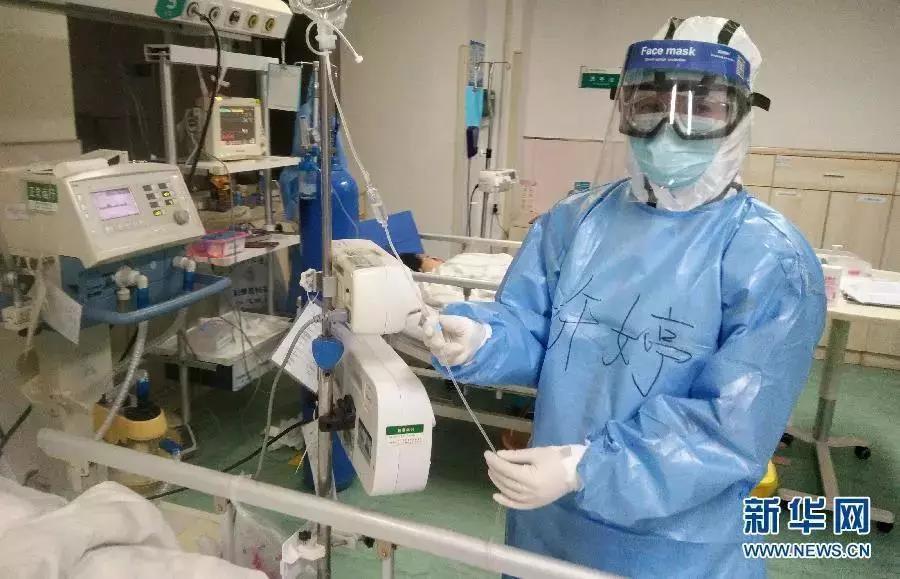 在武漢市第九醫(yī)院重癥監(jiān)護(hù)室,共產(chǎn)黨員、西安市胸科醫(yī)院ICU主管護(hù)師許婷在工作(2月1日攝)。新華社發(fā)